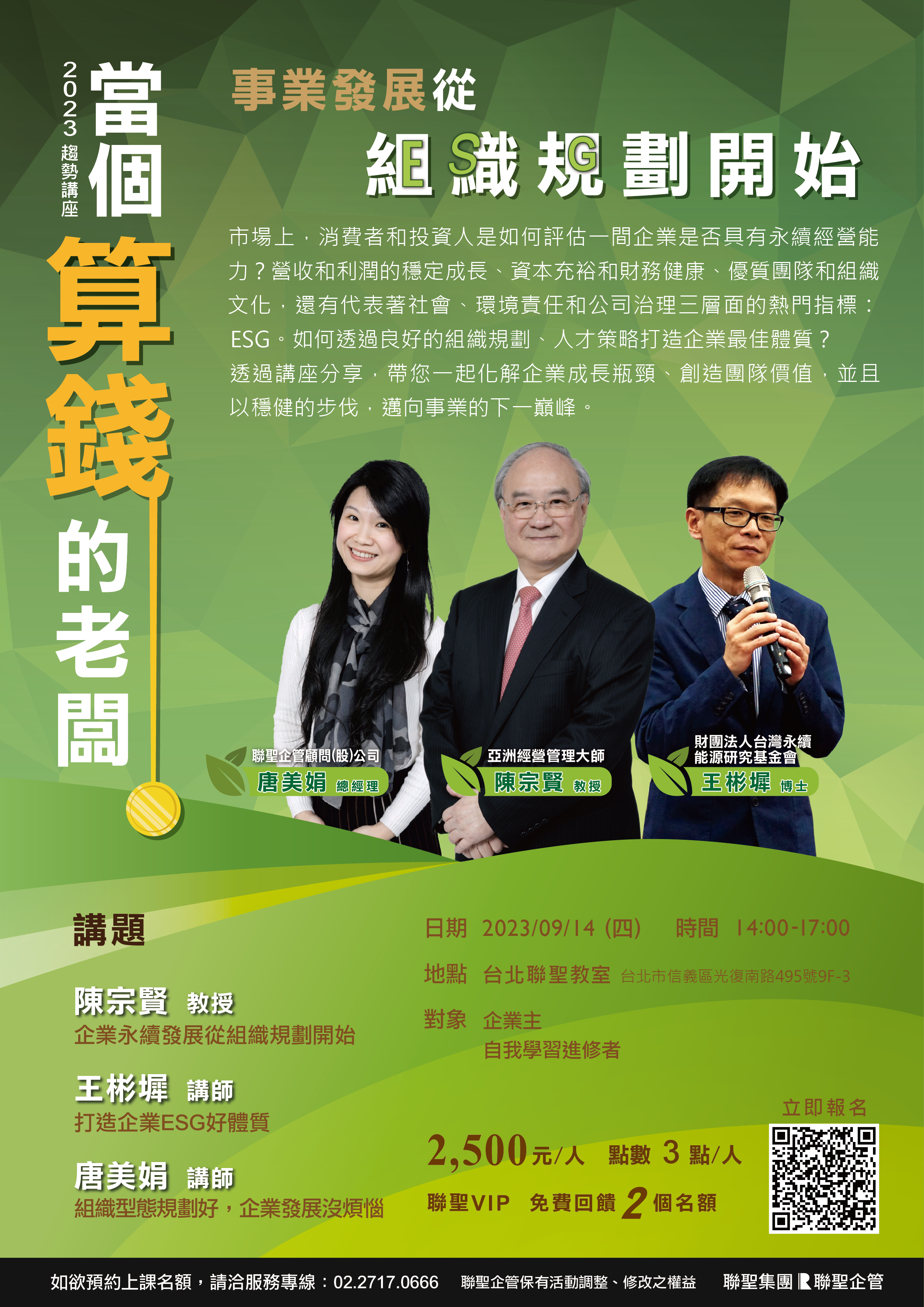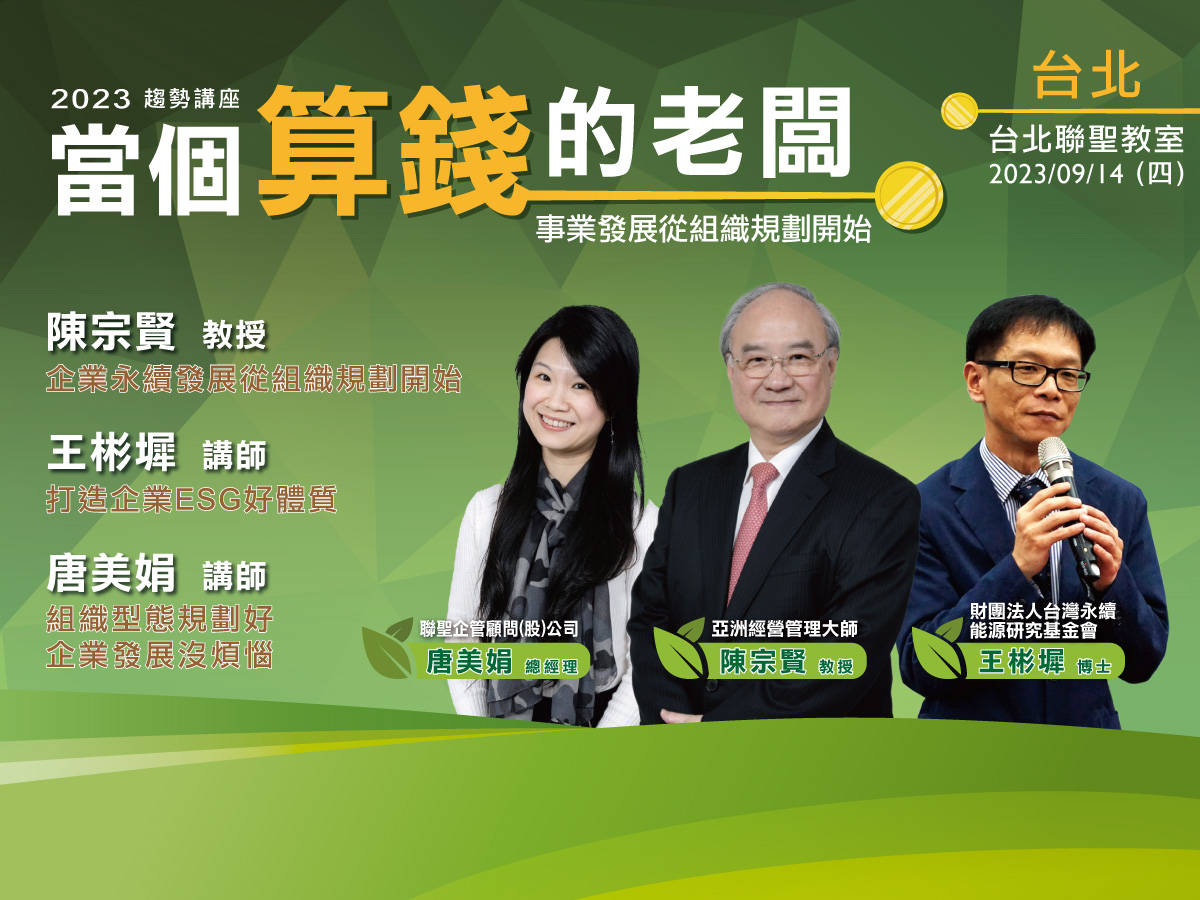 系列課程: 當個算錢的老闆-事業發展從組織規劃開始|台北講座
