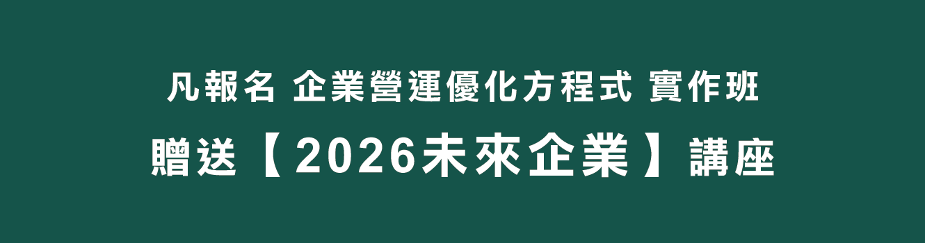 系列課程: 《企業營運優化方程式》從組織、管理到人才,打造高效企業的必修實戰課|台中|第二人起加購價