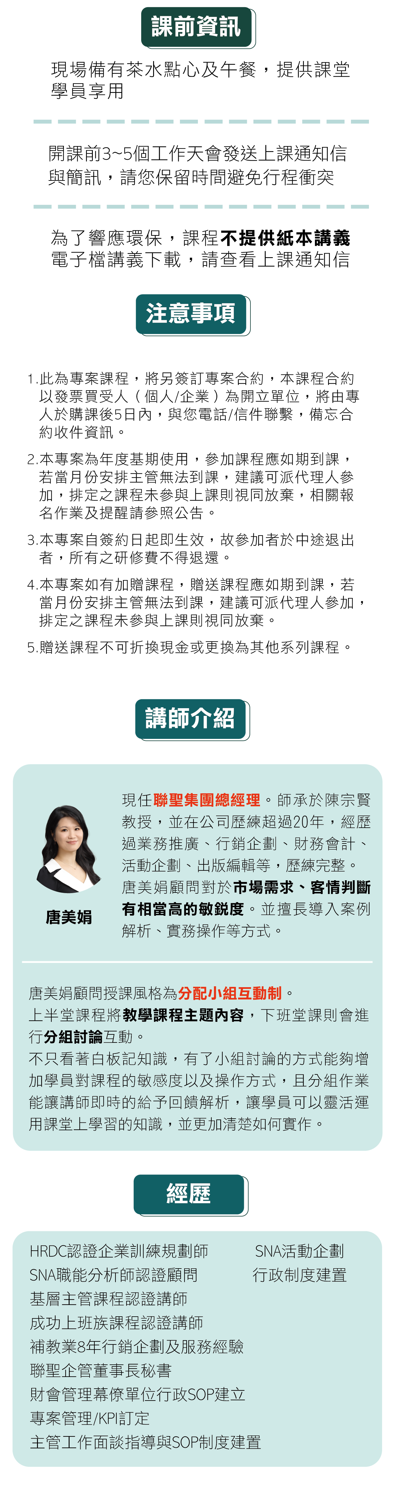 善用工作說明做好人才管理 2026/10/15 唐美娟 老師