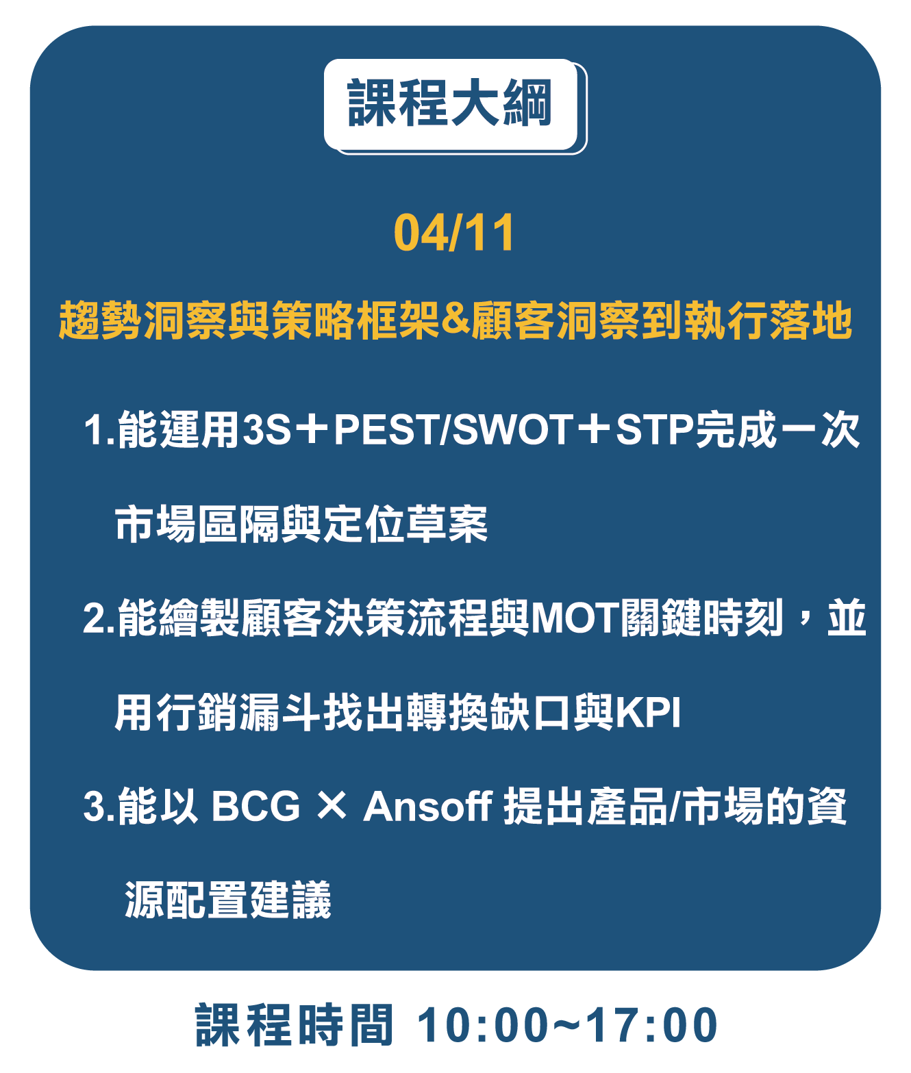 2. 需為新品上市、成長停滯、轉型升級制定策略的團隊與高階核心決策者、企業主。