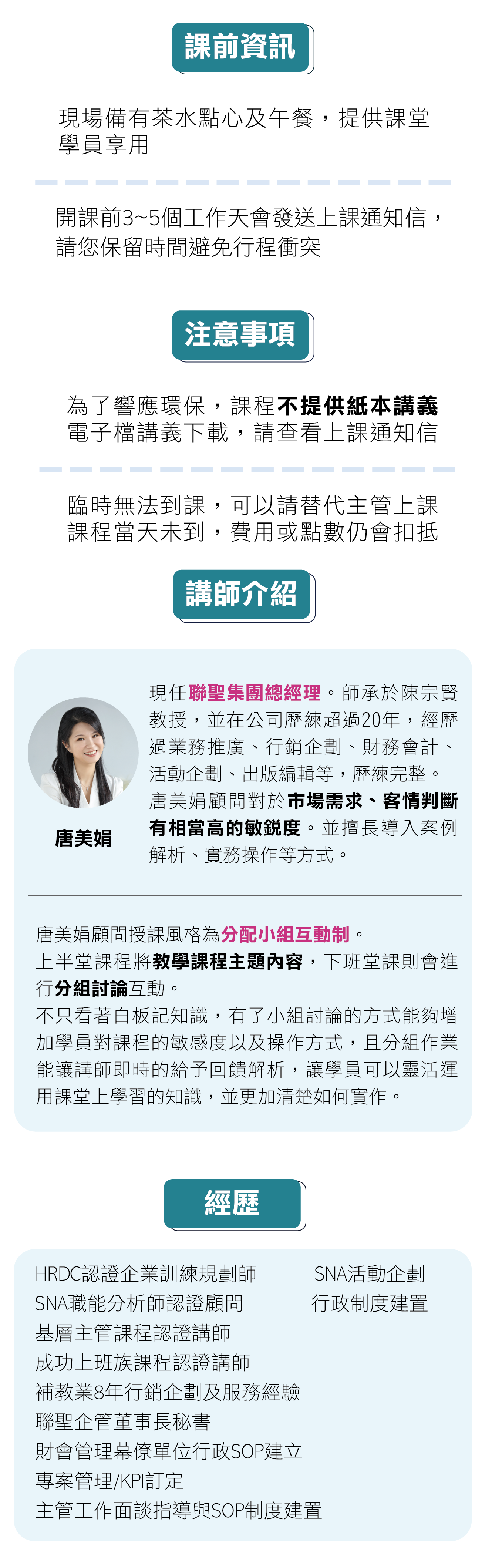 課程對象 決策/用人主管、人才與品牌角色、營運支援角色