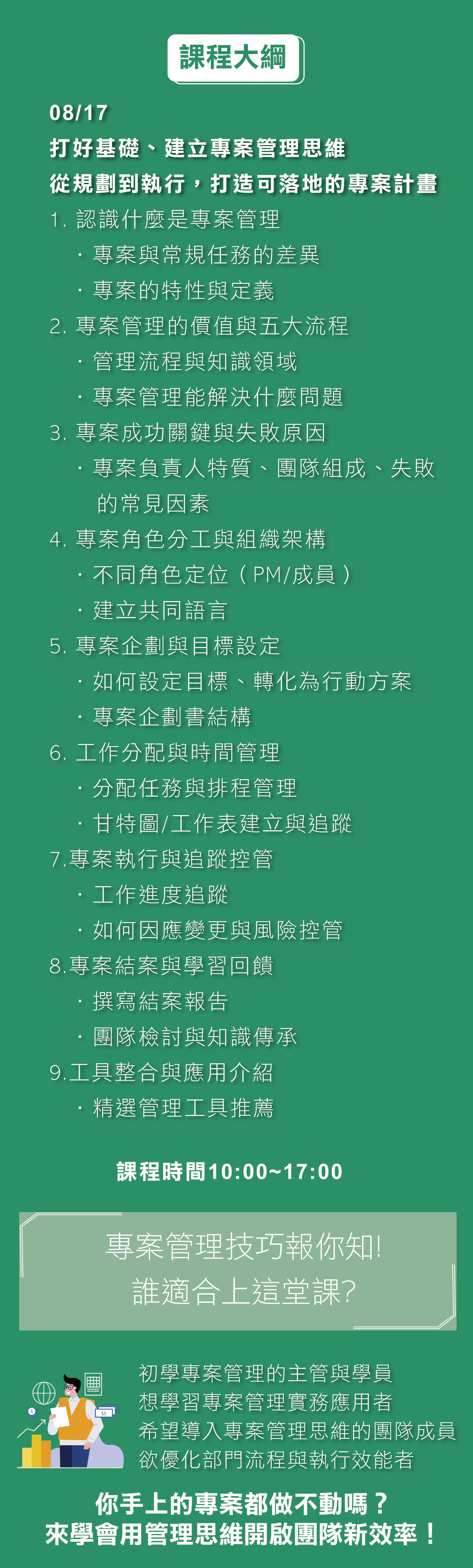 課程對象 專案執行人員或是專案主管,部門或是單位主管、有心自我成長的人員