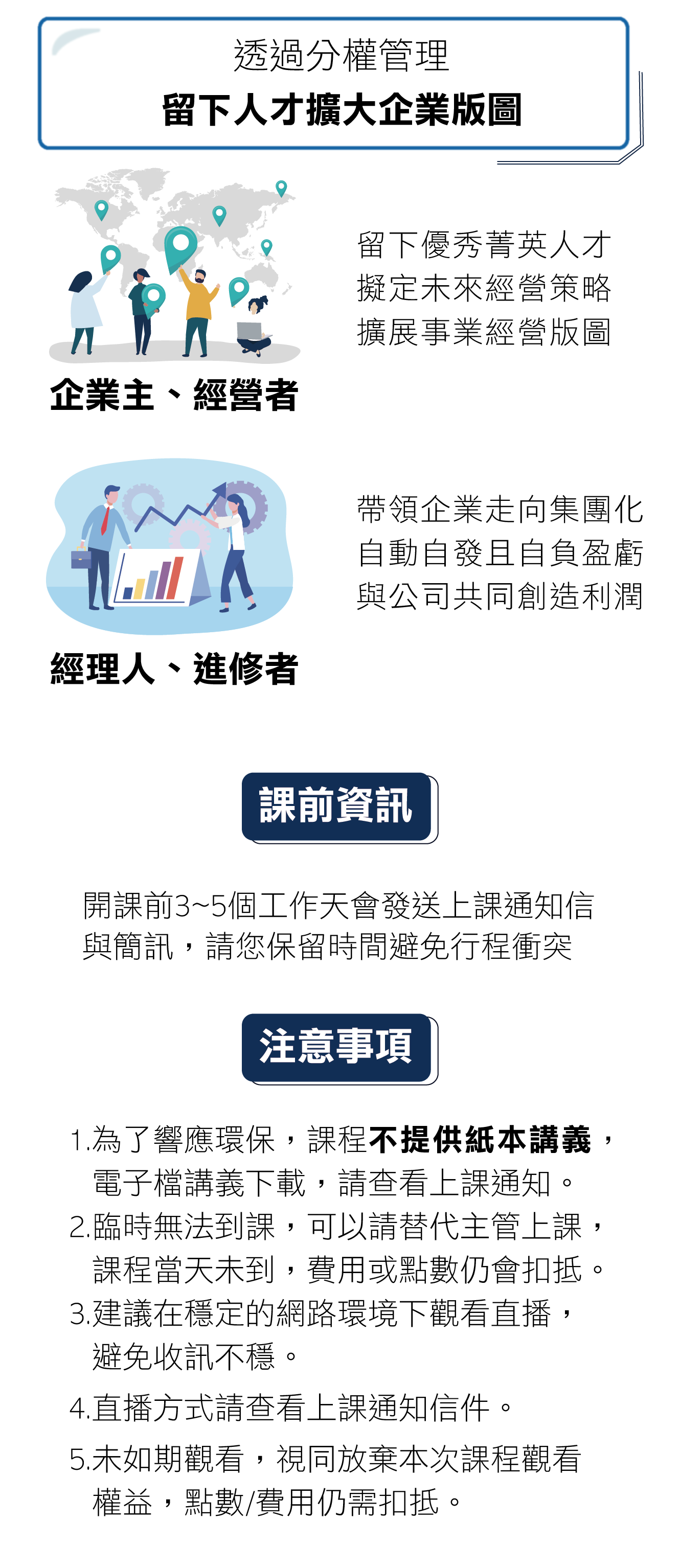 1.企業經營者 2.企業主管人員 3.企業經營規劃主管幹部
