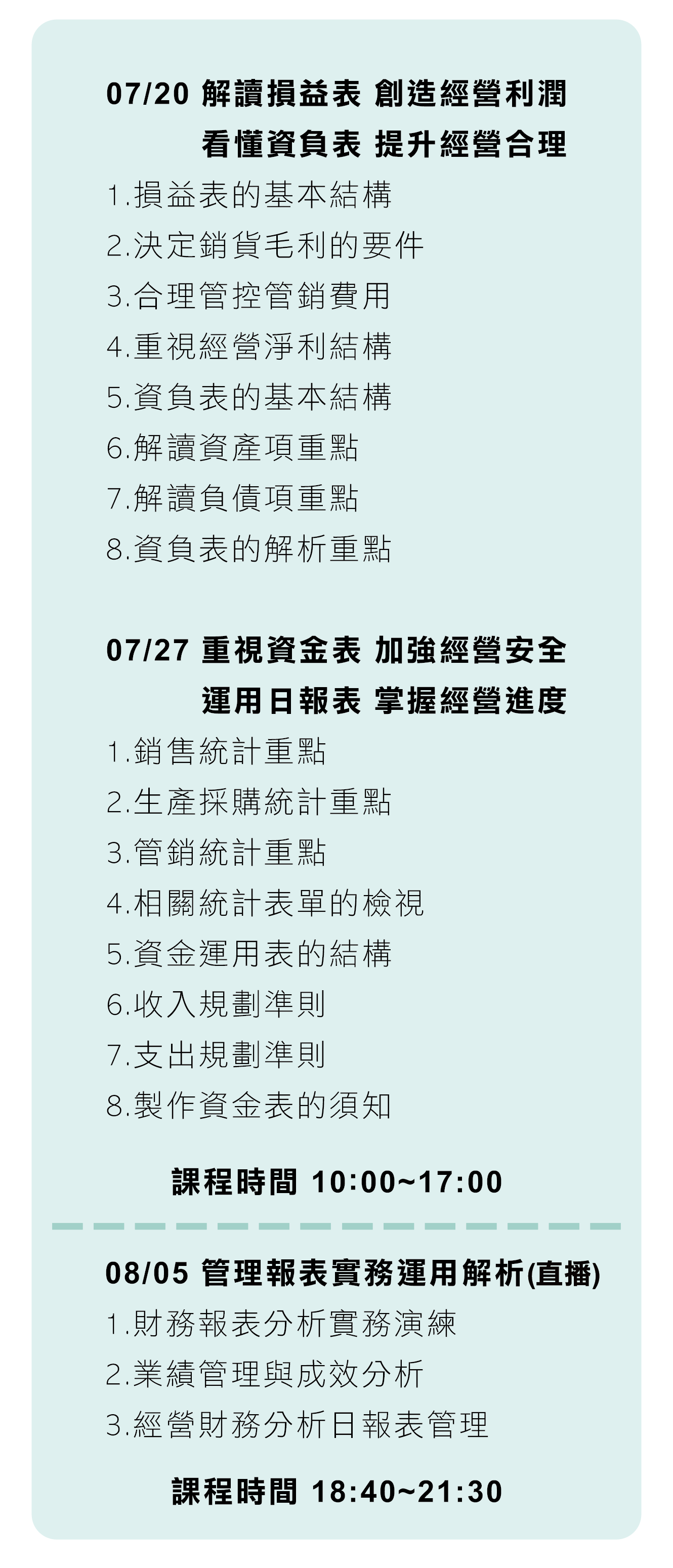 上課時間 2026/07/20 10:00-17:00