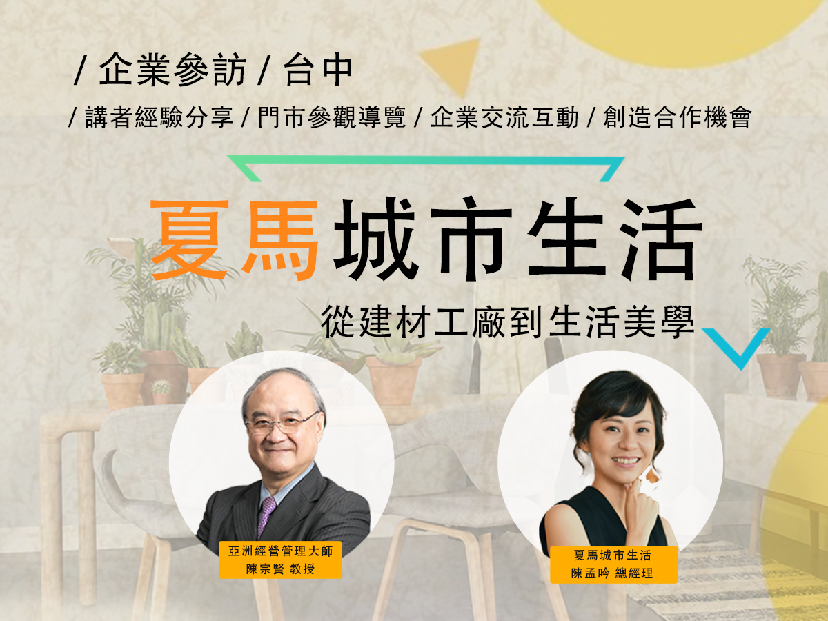 系列課程: 【企業參訪 台中】夏馬城市生活:從建材工廠到生活美學(早鳥價)