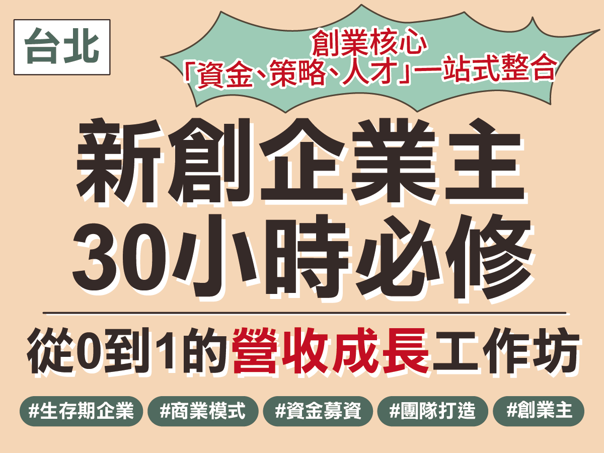 新創企業主30小時必修-從0到1的營收成長工作坊|台北